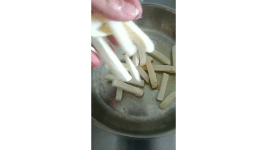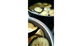 - PASO 5Secar muy bien las berenjenas y freír en aceite muy caliente, colocarlas en papel absorbente y reservar. Este paso es importante, si deseas que tus berenjenas no estén amargas.