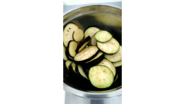 - PASO 3Cortar las berenjenas y lavar, salar, dejar en reposo por 15 minutos.