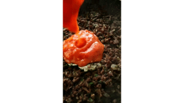 - PASO 4Dorado el sofrito, añadir el vino tinto y dejar evaporar. Luego añadir el puré y pasta de tomate, junto con el caldo de pollo, mezclar y dejar reducir, hasta que el sofrito quede como una pasta